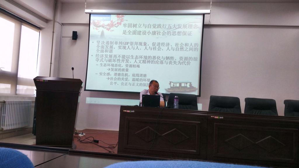 在王兴伟院长的交流汇报中,解读了“全面小康”和“五大发展理念”的深刻内涵及其相互关联,阐述了“牢固树立与自觉践行五大发展理念是全面建设小康社会的思想保证”的深刻含义。在他的交流汇报中,从中国古代四大发明到现代科学技术的突破性发展,强调了科技创新与人才培养在全面建设小康社会中的决定性作用,引经据典,充分说明,在实现中华民族伟大复兴的征途上,创新是我们披荆斩棘的利剑,而教育是铸就利剑的磨刀石,追求科技创新的同时要将重心落实到双创型精英人才的培养上。他还通过大量的事例指出,全面建设小康社会,教育先行是关键,民主法治是保障。他将全面建设小康社会和学院的教育教学、人才培养、学科建设、科学研究和管理等项工作有机结合起来,强调“十三五”期间是学院发展的关键阶段,学院要树立科学和谐的办学观,践行五大发展理念,要处理好规模、质量、结构、效益之间的关系,达到创新、协调、绿色、开放、共享发展的目标。在学院未来几年的工作中,一是要“队伍建设求突破”,以引进和培养大师级和明星级教师为目标,不唯职称,不唯资历,不唯身份,只唯品德、学识和能力,不拘一格选人才;二是要“人才培养上台阶”,保证以学生为本的实现,要高度重视教学,以“与时俱进的教学体系、精深宽实的教学内容、先进的教学方法、严格的教学秩序”赢得“卓越的培养质量”,要把学院全部工作的落脚点放在培养拔尖创新创业精英人才上来,真正做到全员育人,全方位育人,全过程育人,打造实用性、复合型、国际化人才培养的升级版;三是要“学科专业图进位”,要有忧患意识,要戒骄戒躁,扎实推进,努力拼搏,在学科评估、审核评估、双一流建设中争创佳绩;四是要打造“开放包容求是创新”的学院文化,不断提高学院师生员工的成就感和幸福感。