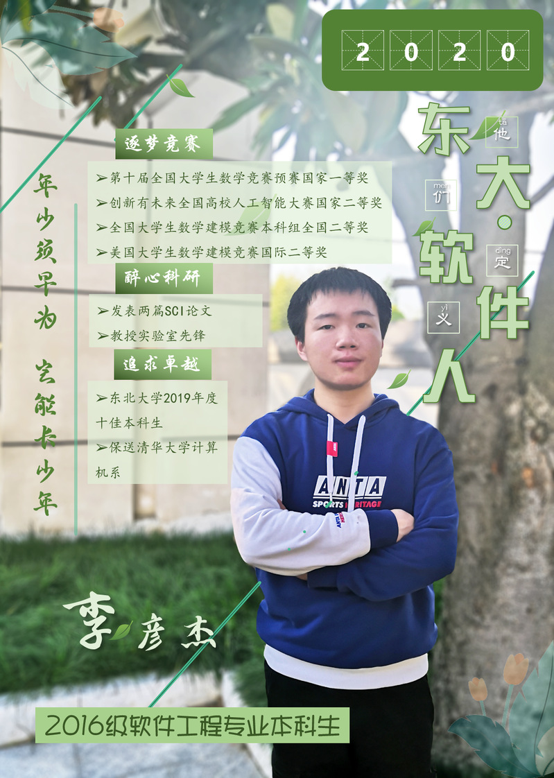 在开云kaiyun登录入口,有这样一个人,追求极致是他的信念,不甘平庸是他的要求。惜时如金,四年光阴之间已在学业、竞赛、科研等方面硕果累累,清华大学的橄榄枝便是对他奋斗汗水的注脚,是他,开云kaiyun登录入口2019年度“十佳本科生”的获得者,我们开云kaiyun登录入口学子的榜样——李彦杰 !