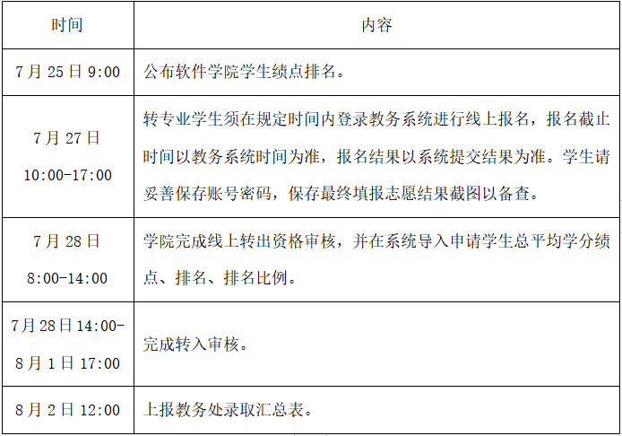 6.学院在官方网站对拟转出学生的信息(主要包括学生姓名、原专业、拟转入专业、专业成绩排名、支撑材料)进行公示,公示期不少于3个工作日。