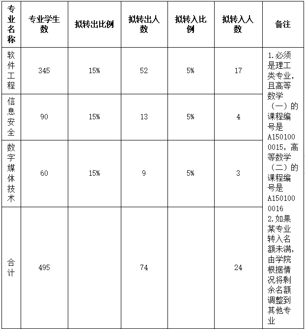 开云kaiyun登录入口各专业拟转出/转入情况,具体见下表
