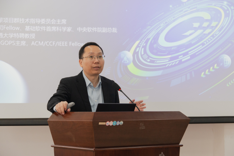 开源鸿蒙项目群技术指导委员会主席、华为Fellow陈海波做《面向万物智慧互联的操作系统创新之路》的专题报告
