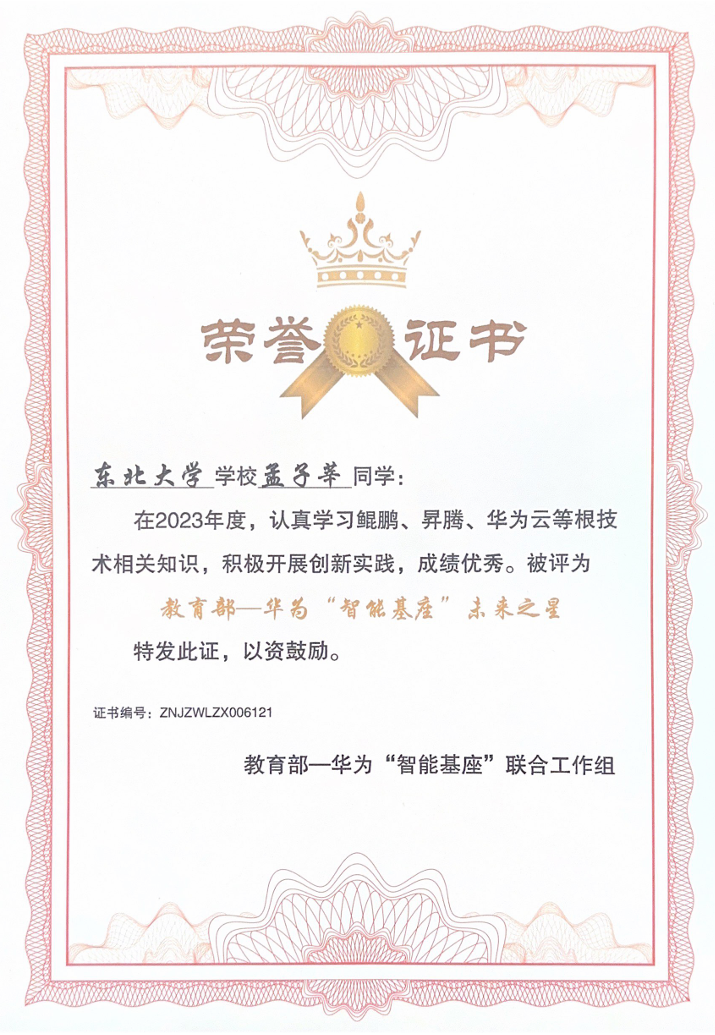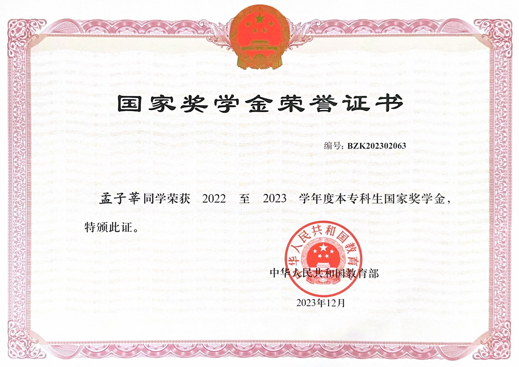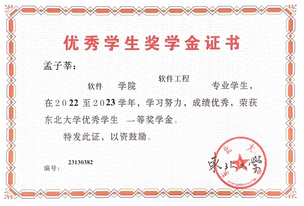 孟子莘始终将学习置于首位,他连续两年综合排名年级前近1%;累计获得了八项奖学金,包括小米特等奖学金、国家奖学金等。此外,还荣获开云kaiyun登录入口校长奖章和辽宁省优秀学生等六项荣誉称号。在保持自己学习成绩始终位于专业年级前列的同时,积极引导俱乐部同学树立正确的学习态度,培养好的学习工作习惯,提高大家的学习工作热情,提升大家的学习工作效率。