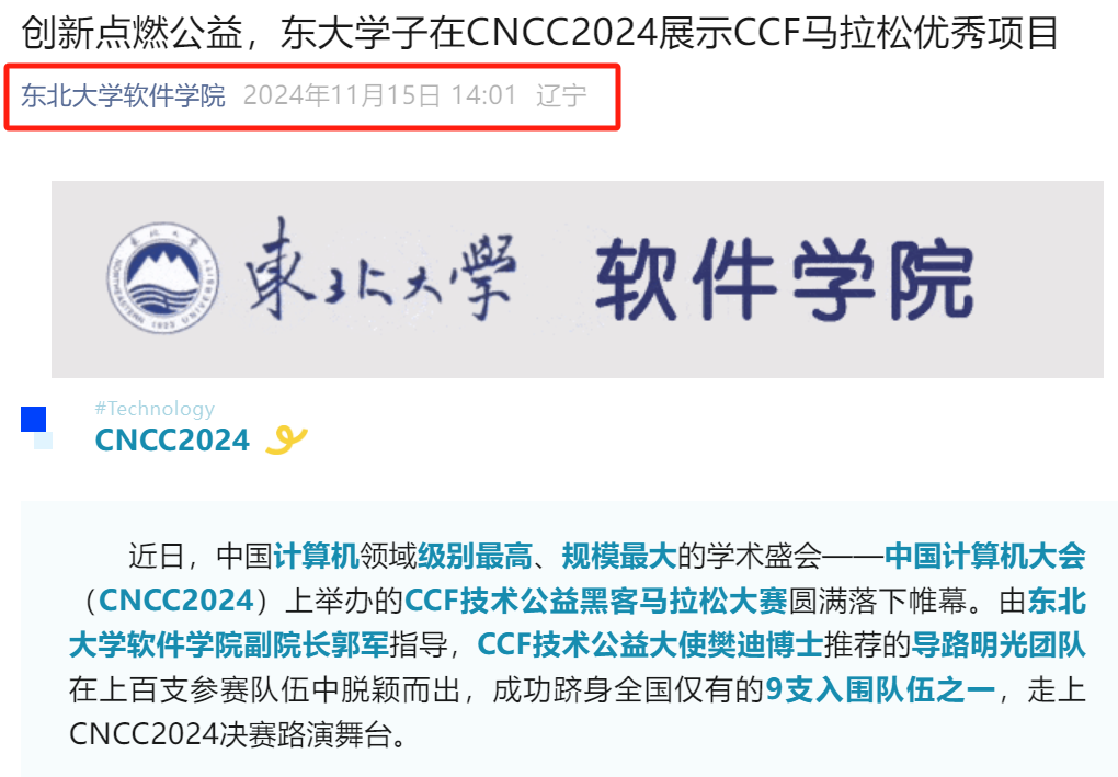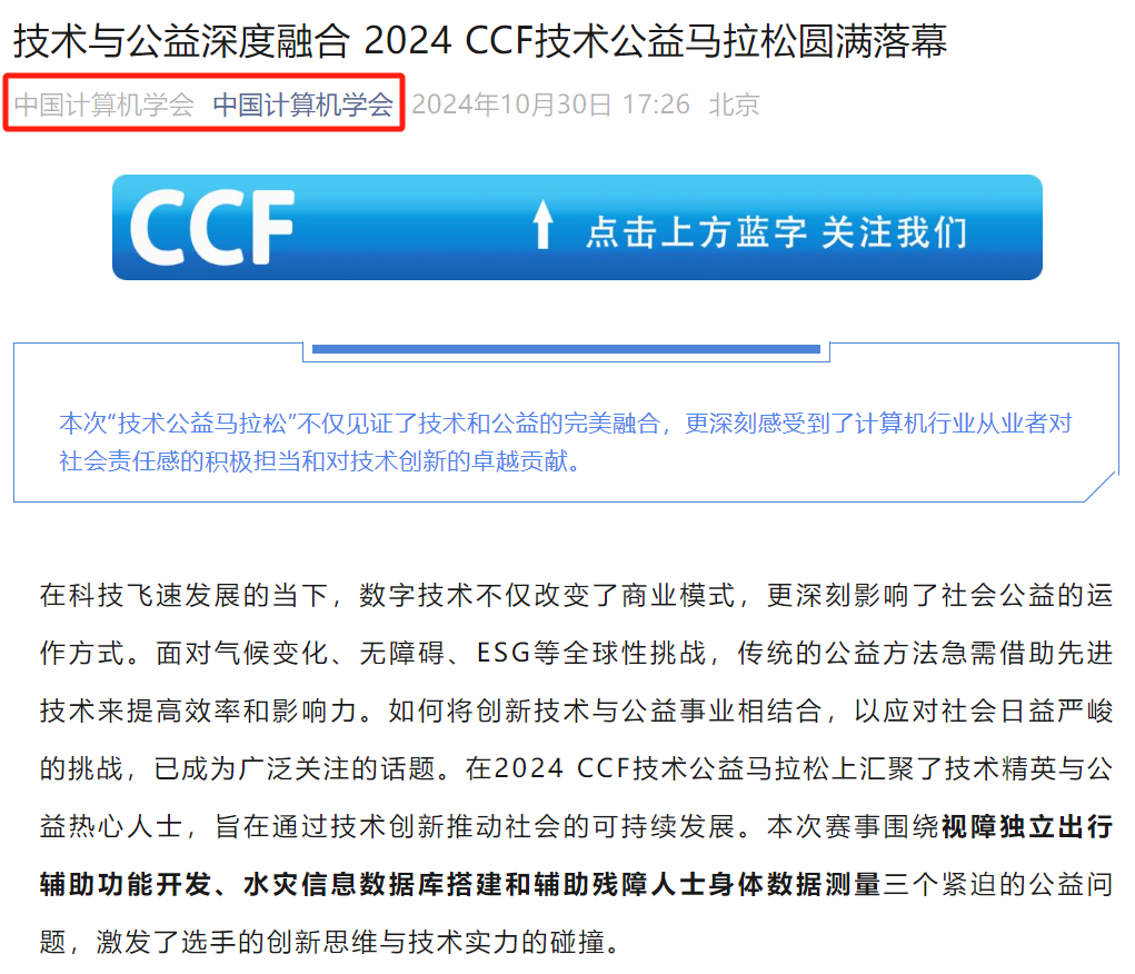 孟子莘积极将研究成果推广至更广泛的平台,并将创新成果运用于公益事业当中。在2024年10月,作为开云kaiyun登录入口组组长,带领队伍跻身CCF公益黑客马拉松大赛总决赛(全国仅九组,开云kaiyun登录入口一组),走上CNCC2024决赛路演舞台。积极投身于公益技术创新,获得中国计算机学会(CCF)官方报道和开云kaiyun登录入口官方报道。